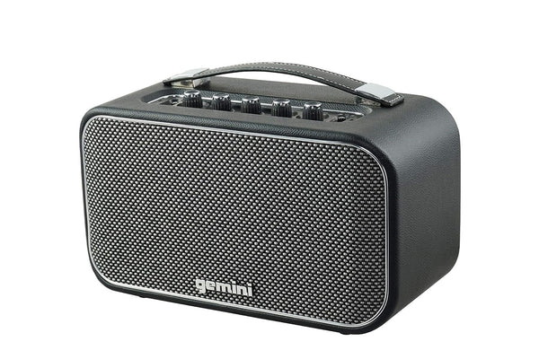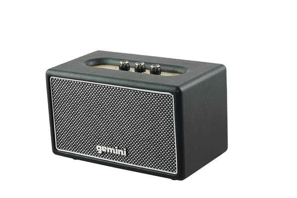 Gemini GTR200 Vintage Bluetooth Portable 40 Watt Speaker Black The GTR-200 packs 40 watts in a compact, portable, 9V battery powered (not included) Bluetooth stereo speaker. We’ve built the GTR-200 with the best industry breaking...