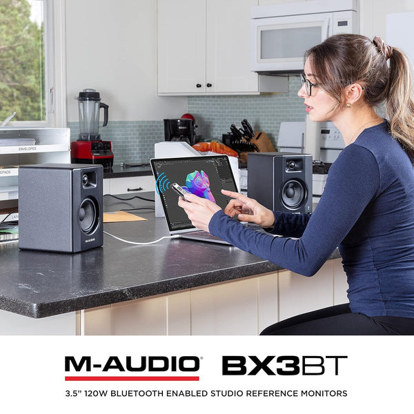 M-Audio BX3 BT Bluetooth®-enabled multimedia reference monitors deliver professional sound in an attractive compact design. Engineered for a pristine listening experience with the flexibility to stream music and audio from any Bluetooth® device, BX3 BT...