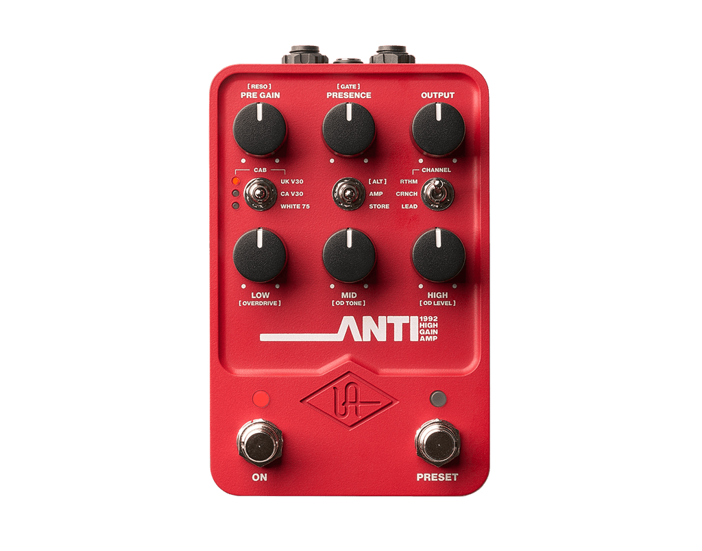 UAFX ANTI 1992 High Gain Amp delivers the authentic sound of the 120-watt tube behemoth that gave rise to aggressive “scooped” guitar tones of bands like Slipknot, In Flames, Machine Head, and countless others. Combined with perfectly-miked cabinets, ANTI 1992 lets you unleash bone-crushing riffs, crystalline cleans, and everything in between. anti_feature_sm_1