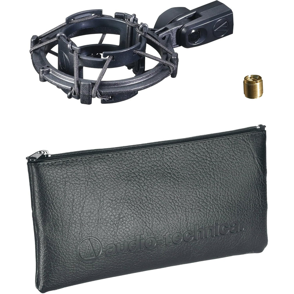 Includes AT8458 shock mount for 5/8"-27 threaded stands; 5/8"-27 to 3/8"-16 threaded adapter; soft protective pouch.