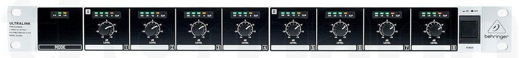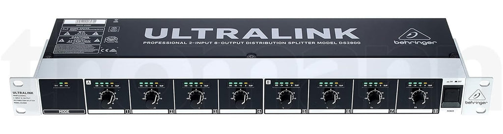 When it comes to providing signal distribution in commercial sound applications, the DS2800 Professional 2-Input 8-Output Distribution Splitter is in its class. Extremely flexible and easy to use, the DS2800 features two modes of operation that allow you to send either 2 audio signals to 4 separate zones, or a single signal to up to 8. This level of versatility makes the DS2800 the ideal choice for a wide range of applications including everything from recording studios to shops, restaurants and more.