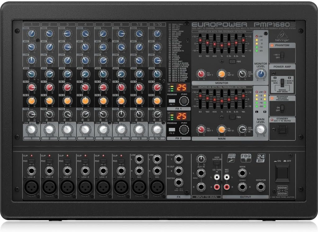 1600-Watt 10-Channel Powered Mixer with Dual Multi-FX Processor and FBQ Feedback Detection System