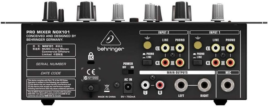 Designed with both the professional and entry-level DJ in mind, the NOX101 provides RCA Inputs for turntables, tapedecks and CD players, plus professional-grade features, such as a balanced TRS Mic Input with our legendary XENYX Mic Preamp, and balanced (as well as unbalanced) outputs for connecting to power amps or active loudspeaker systems.