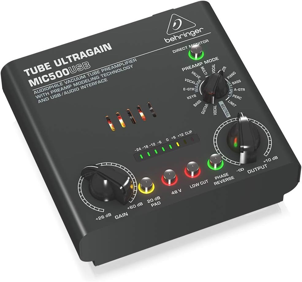 Tubes can really warm up a signal fast, giving it depth and character. Though transistors have succeeded the technology, many musicians agree that tubes deliver a far superior sound. The TUBE ULTRAGAIN MIC500USB’s handselected 12AX7 vacuum tube gives everything from microphones to acoustic or bass guitars that vintage tube vibe – in a dependable and ultra-affordable package.