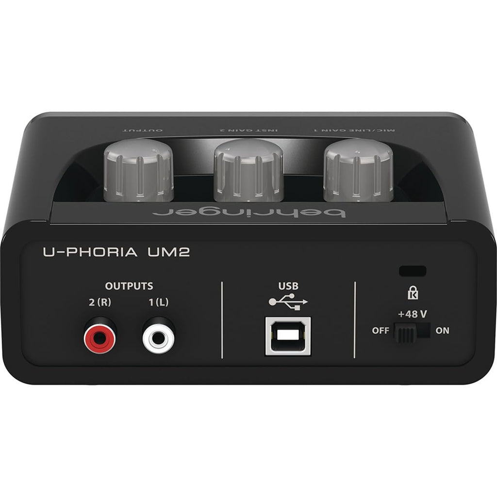 The amazing UM2 ultra-compact 2 x 2, 48 kHz USB audio interface allows you to record the perfect vocal or instrument tracks directly to your computer, thanks to the XENYX Mic Preamp with +48 Volt phantom power for condenser microphones – and studio-grade 48 kHz converter for superb sound quality. Whether you’re a singer-songwriter, producer on the go, or just need a rock-solid interface for running backing tracks at the gig, the ultra-dependable U-PHORIA UM2 will help you shine in the digital domain.