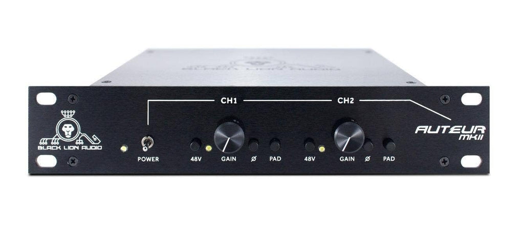 2nd-generation Outstanding 2-channel Preamp Black Lion Audio has a reputation for gear that sounds a lot more expensive than it is, and the Auteur MKII 2-channel Microphone Preamp is no exception. The Auteur MKII is the second generation Auteur with lush preamps that capture every detail of your signal. It offers ultra-fast input stages, 65dB gain, a frequency response wider than its predecessor's, and lower noise/distortion levels. Plus it delivers all the great features of the original: dual channel functionality, 48V switchable phantom power on each channel, phase switching, and a 10dBu pad option for both channels, as well. The Auteur MKII has XLR in and TRS out on Ch. 1 and Ch. 2, and it's wrapped in a 1U, 1/2 rack housing.About Black Lion Founded in Chicago in 2006, Black Lion Audio has made their mark on the audio industry by hot rodding audio equipment and upgrading the sound
