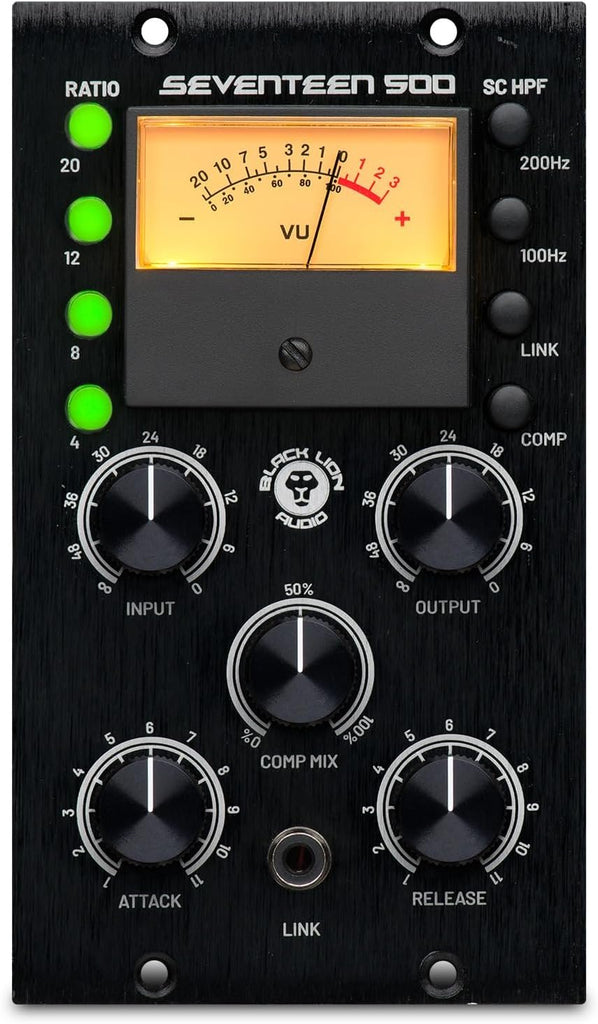 The King of the FET Compressor Jungle The Black Lion Audio Seventeen 500 is the company’s version of the classic’76 limiting amplifier. More specifically, it’s BLA’s idea of what the ’76 could have been had it been created with the technology of today and in a 500 Series package. The Seventeen 500 FET Limiting Amplifier features an improved and redesigned IC-based front end, which is combined with BLA’s custom-designed output transformer. This combination results in a clean and modern sound when the Seventeen 500 is lightly compressed, a harmonically rich vintage character when more heavily driven, and a ton of low end that perfectly complements its open high end. The Seventeen 500 also features Black Lion Audio’s proprietary power decoupling for an incredibly low noise floor, and its high-grade Nichicon signal capacitors are considered among the best quality capacitors currently available. Overall, Sweetwater studio engineers are greatly impressed by