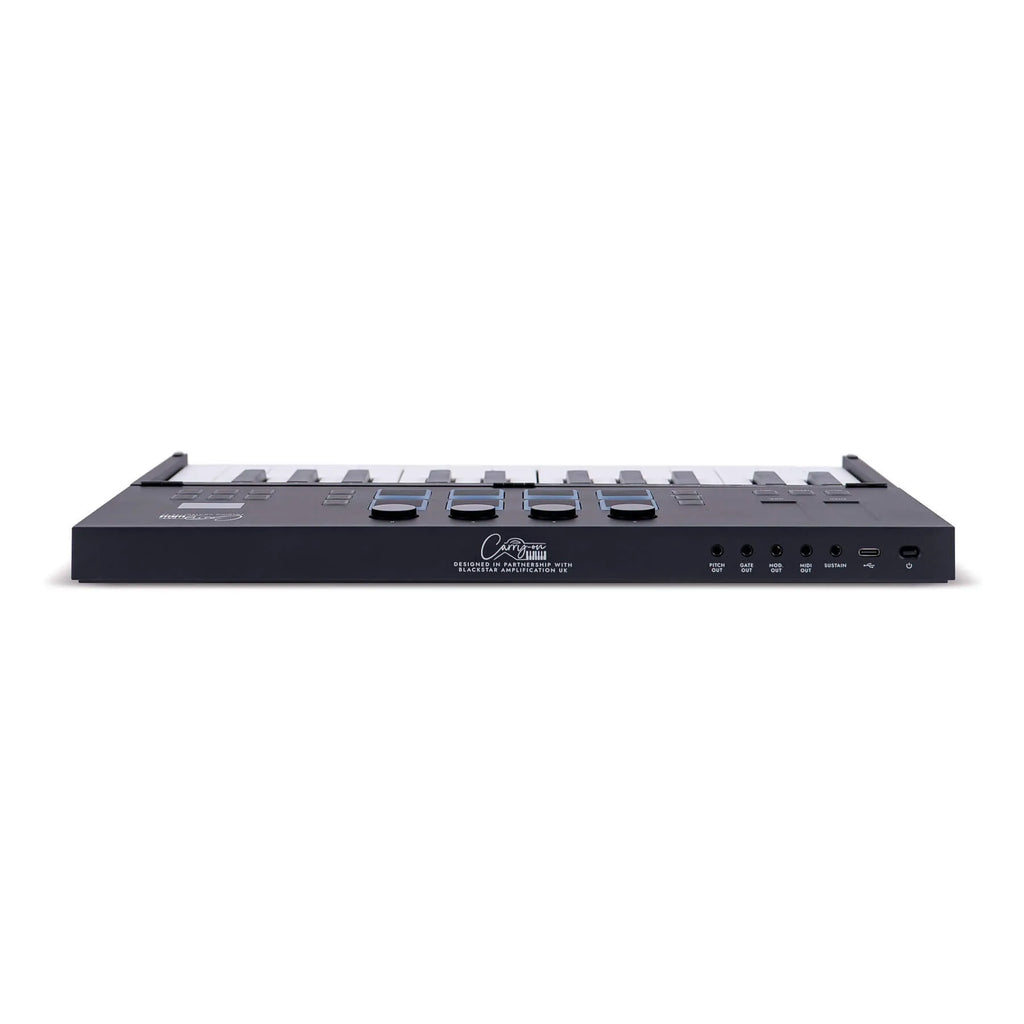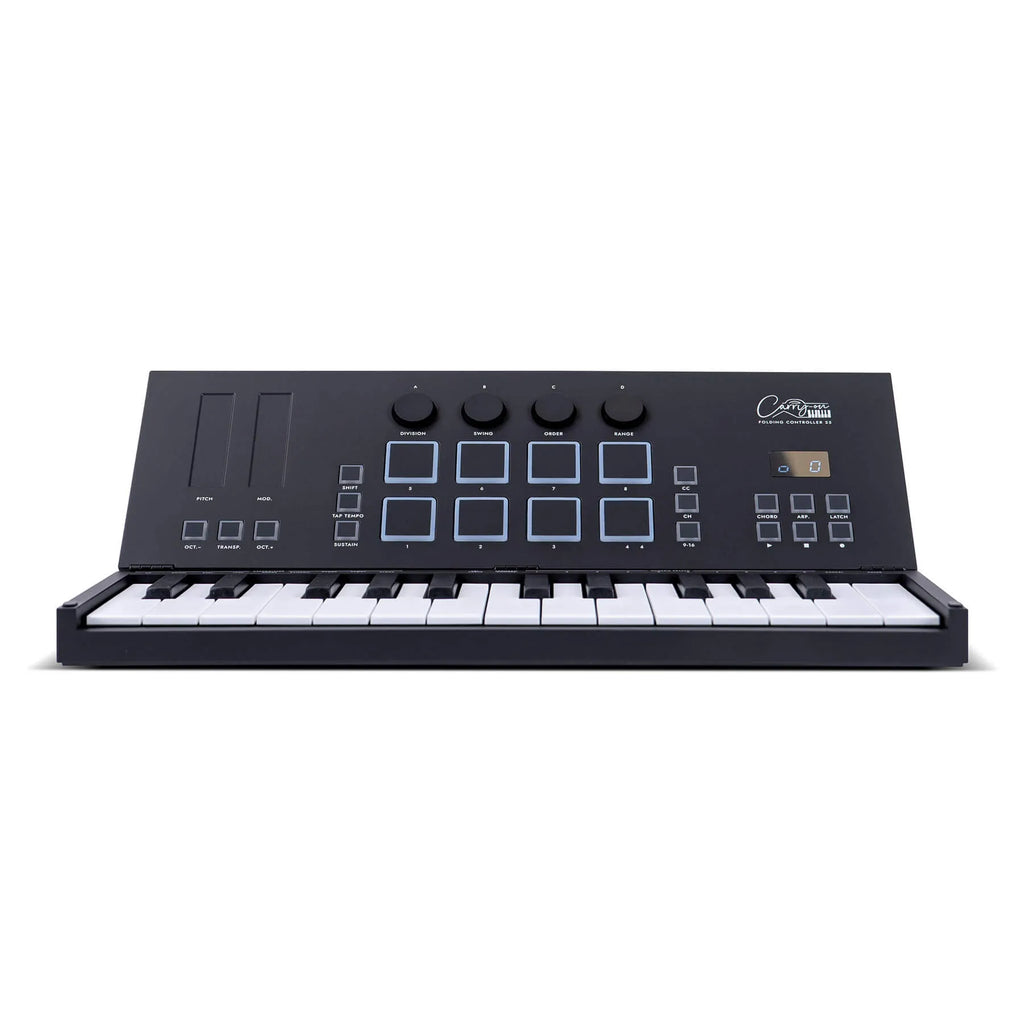 • lightweight and compact design that unfolds into a full length 25-key MIDI controller
