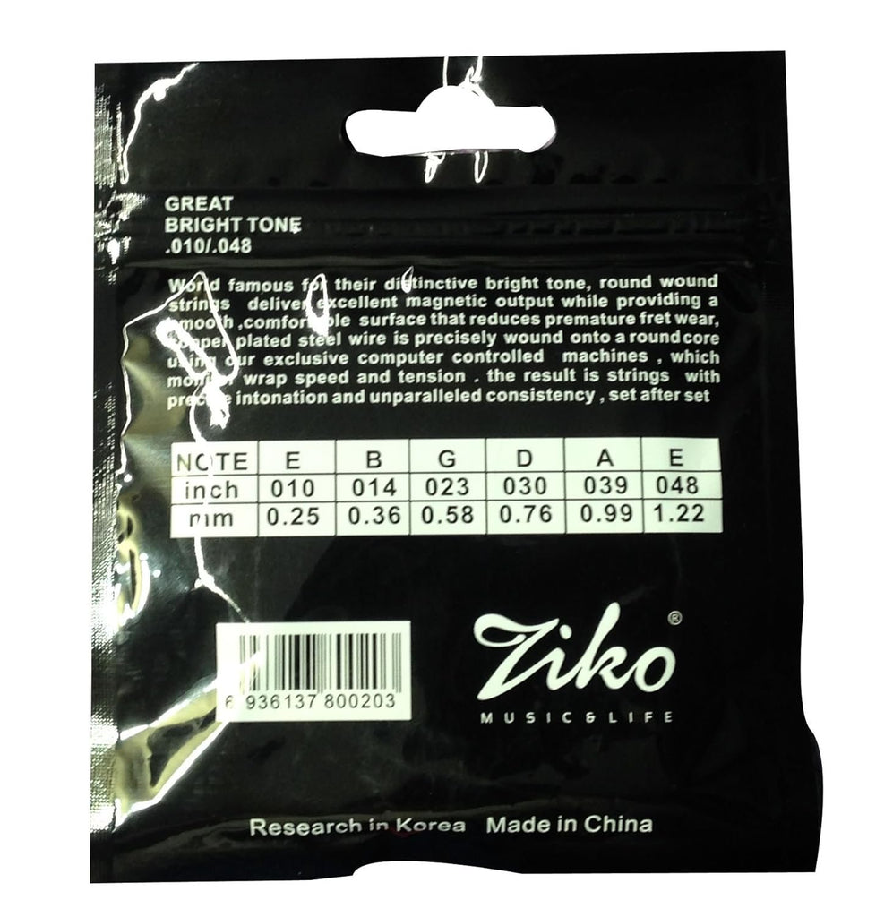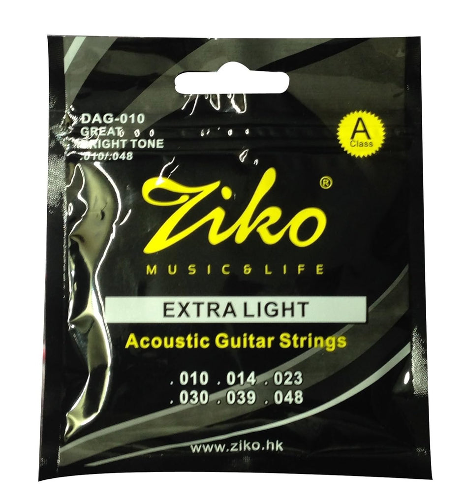 Ziko Extra Light Acoustic Guitar Strings DAG-010. 6 Strings. Standard quality, One complete set of acoustic guitar strings.Product Dimensions 4 x 4 x 0.2 cm; 30 Grams.