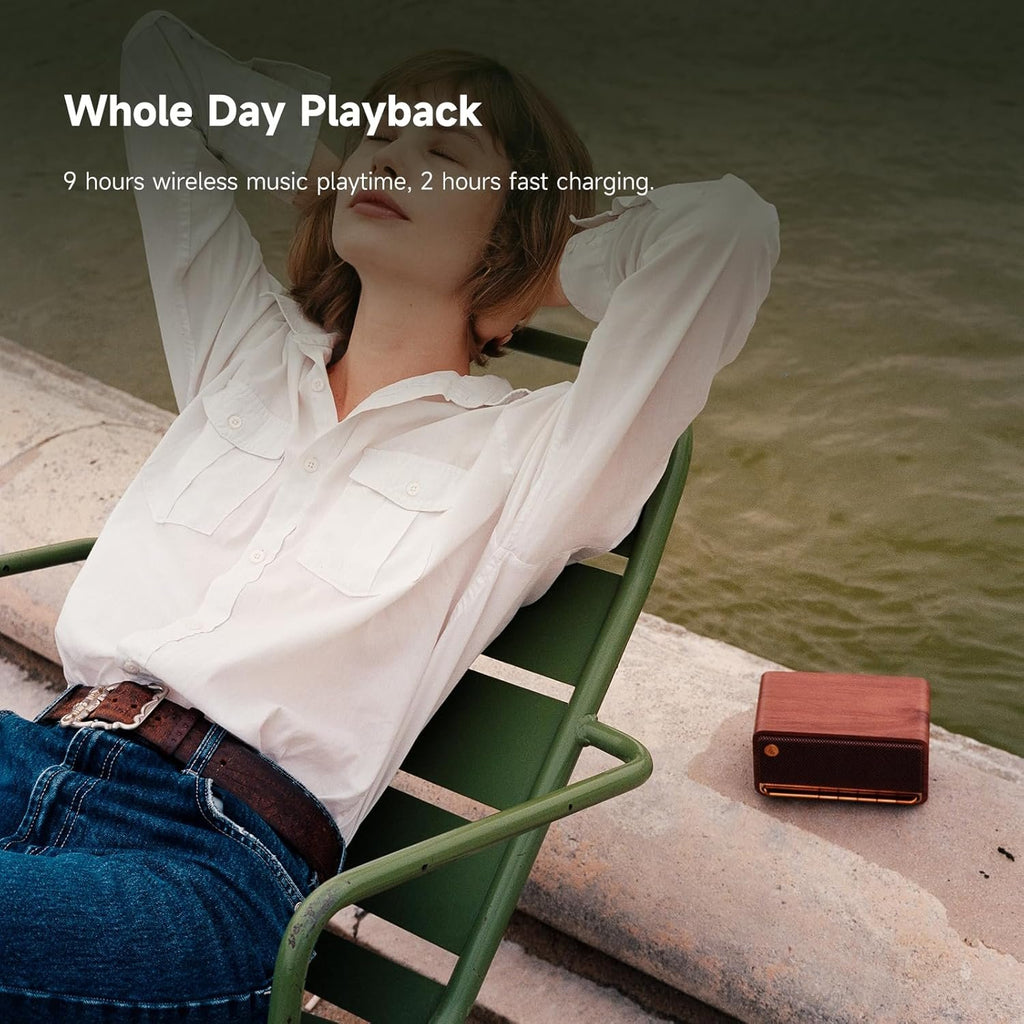 Weaving together a retro design aesthetic with modern day functionality, the MP230 Tabletop Wireless Speaker from Edifier features a rounded, real wood enclosure, and the ability to receive streaming audio from a Bluetooth mobile device. Further expanding on its classic design, the MP230 has a front mesh grille and piano key-style tactile buttons that all hark back to the vintage table radios of the 1950s and 1960s. While you can conveniently stream via Bluetooth, you can also input music using the AUX port, USB-C port, or an optional microSD card. However you play your audio, you will enjoy a wide soundstage thanks to dual 1.9" 10W full-range drivers and dual passive radiators.