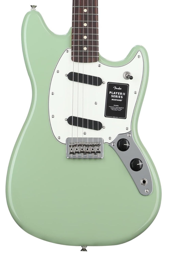 A Must-have Mustang for the Modern Player Fender’s Player II Mustang represents a modernized reimagining of the brand’s short-scale alternative icon, elevating the alternative style and sound of the original with enhanced performance and playability. It all starts with a slim slab body comprised of alder and a 6-saddle hardtail bridge that forgoes the tremolo unit of the original for a more stable and secure feel. Two angled Player series Alnico V single-coil Mustang pickups grant you the chiming highs, firm bass, and snappy short-scale pop that have made the Mustang a standard-issue 6-string among grunge, alternative, and indie-rock guitarists for decades. Hop on over to the opposite end to be rewarded with a fast-playing Modern “C” neck profile, a 9.5-inch fingerboard radius, and medium-jumbo frets — a formidable fretboard formula that’s sure to please players of all stripes with slick bends and effortless chording. Wrap it all up with