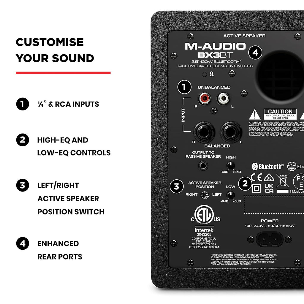 M-Audio BX3 BT Bluetooth®-enabled multimedia reference monitors deliver professional sound in an attractive compact design. Engineered for a pristine listening experience with the flexibility to stream music and audio from any Bluetooth® device, BX3 BT monitors have the latest Bluetooth® technology combined with rich studio-quality sound.