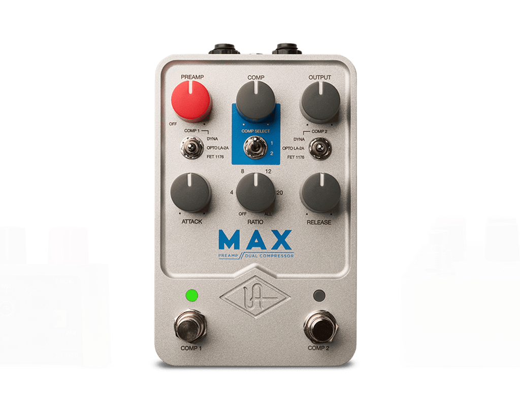 Built upon award-winning UAFX dual-engine processing and a burning desire for the ultimate in sonic legitimacy, Max Preamp & Dual Compressor puts the colorful sound of three legendary limiters and an iconic tube preamp, right at your feet.