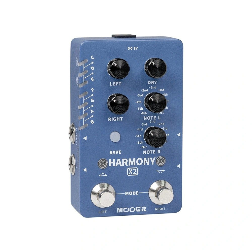 The Mooer Harmony X2 takes harmonic guitar effects to a whole new level with its dual-channel, pitch-shifting capabilities. Offering 12 chromatic scale pitch selections and 11 unique harmony modes—ranging from thirds to octaves—it lets players build incredibly rich textures with ease. What sets it apart is the ability to assign different harmonies to the left and right channels, independently adjusting their volumes for a wide, immersive stereo spread. The ‘Dry’ dial controls the blend of your original tone with processed harmony, ensuring clarity and tonal balance. With an intuitive layout, dual-footswitch control, and real-time visual feedback, Harmony X2 is both advanced and user-friendly—perfect for live performances or studio layering.