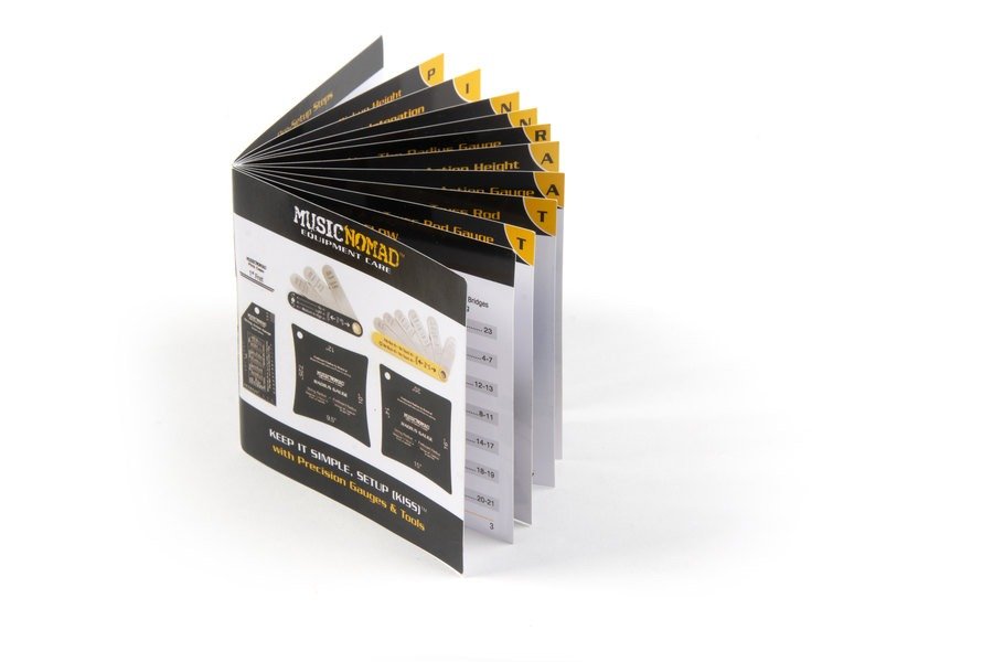 The included 6-piece precision gauge set offers unbeatable accuracy with durable laser-etched stainless steel tools. The set includes a truss rod gauge, pick capo, string action gauge, two radius gauges, and a nut height gauge. Each gauge features clearly marked instructions and measurements, eliminating guesswork and ensuring consistent results. These tools cover every critical setup point—from string action to fretboard radius—helping you dial in the perfect feel and tone. Also included is a 24-page instructional booklet and a convenient carrying case, making this set ideal for workshops, stages, or DIY maintenance at home.