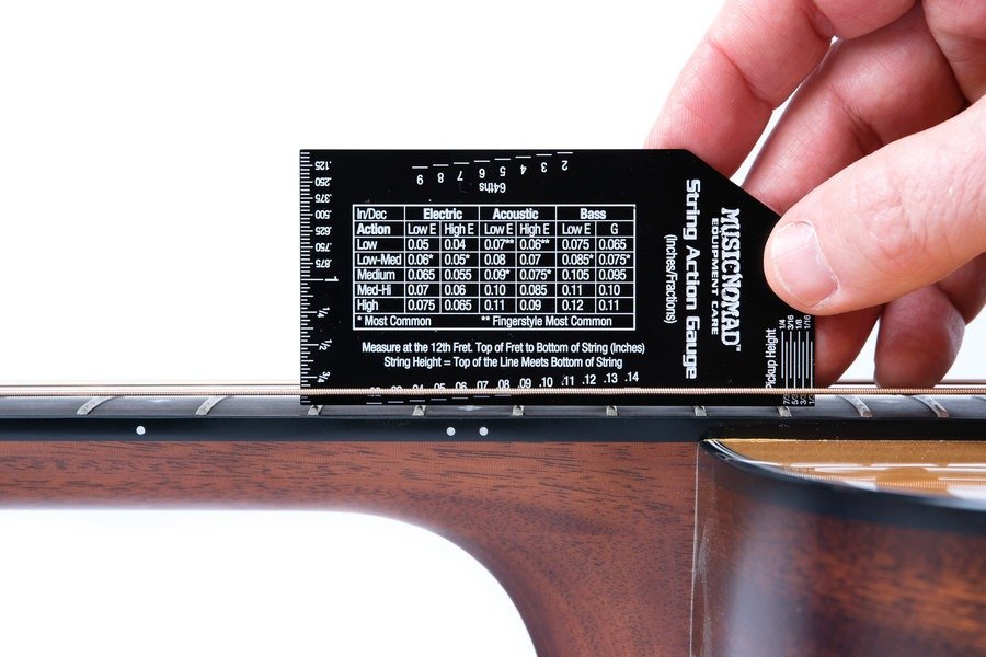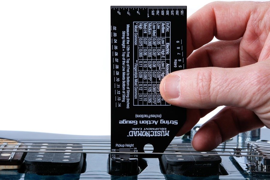 Measuring string action is a crucial part of achieving a smooth and playable instrument. The Precision String Action Gauge features a matte black finish with deep etched white markings for ultimate readability and precision. You can measure in inches, metric, or 64ths to suit your preference. A handy pickup height ruler on the same gauge helps you fine-tune your pickup levels for optimal output and tone. It also includes a reference chart for proper string height by instrument type. Built from premium stainless steel, this gauge offers long-term durability and professional-grade performance.