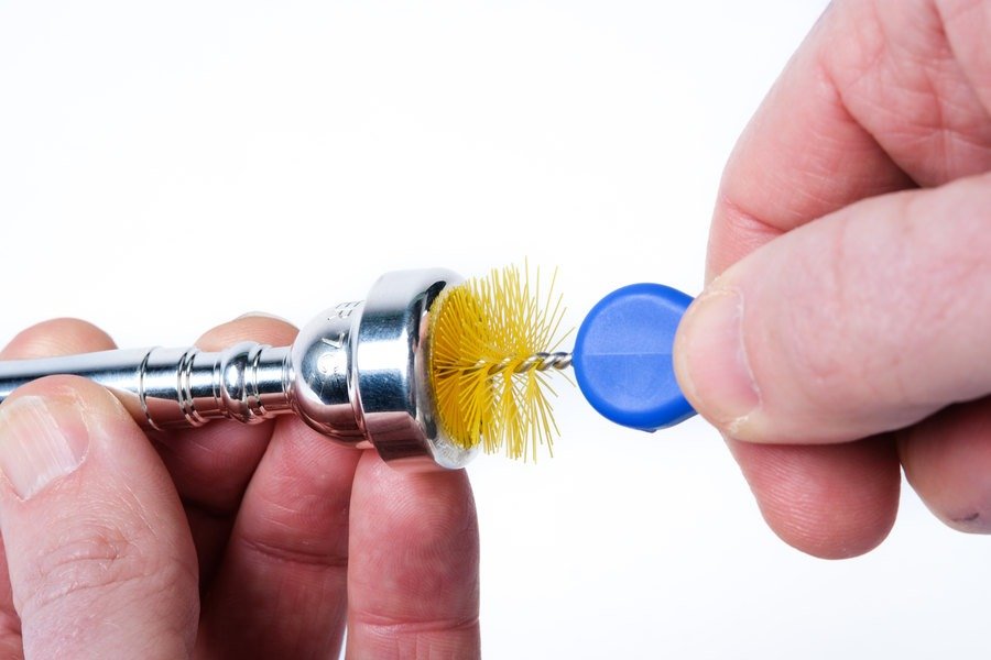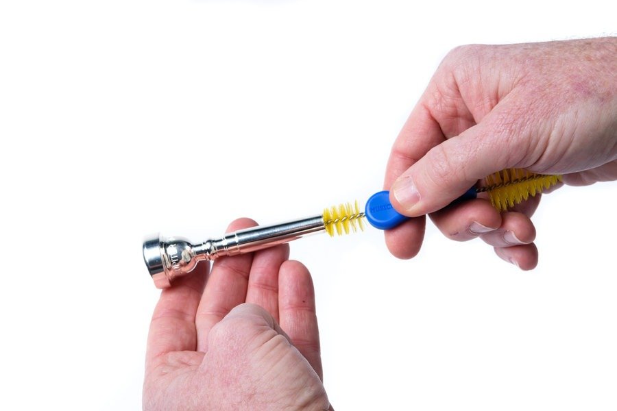 The innovative 2-in-1 Mouthpiece Brush features a long 3.5" shaft to clean deep inside the backbore and throat of your trumpet. Flip it around and use the wide cup brush to cover the entire mouthpiece area. With premium medium-stiff bristles and protective bumper tips, this brush removes grime without damaging your instrument. The ergonomic handle offers excellent grip and control, making routine cleaning effortless and safe. It's the ideal tool for keeping your mouthpiece in top shape, ensuring a cleaner airflow and clearer tone with every performance.