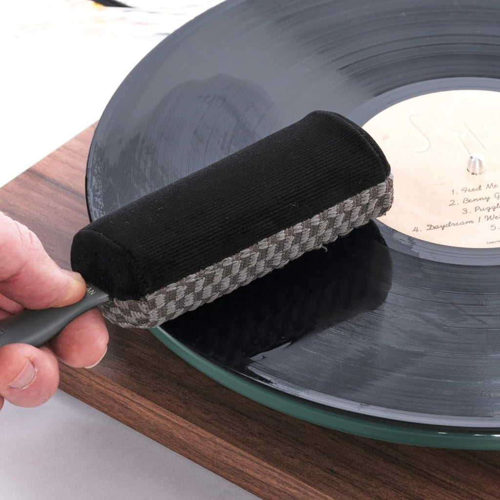 The star of the kit is our 3-in-1 cleaning brush system, featuring a triple-layer tool with advanced functionality. Start with the super-soft brown brush to gently remove dust from your turntable, tonearm, and surfaces—excluding your record and needle. Next, the black directional pad safely lifts dust and debris off your vinyl, doubling as an applicator for the included cleaning solution. Afterward, simply flip it to the grey drying side to remove moisture and residue. The ergonomic handle gives you unmatched comfort and control, making every cleaning session efficient and enjoyable.